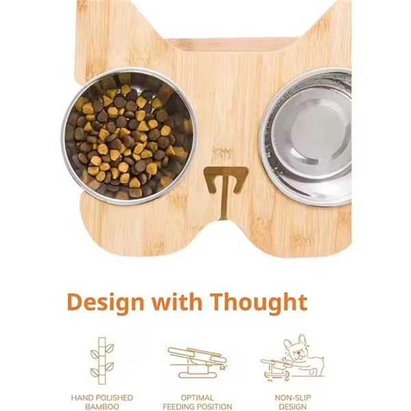 Premium Dog Cat Basic Food and Water Bowl Set Cat Shape Pet Feeder Stand Wooden Pet Bowl Stand